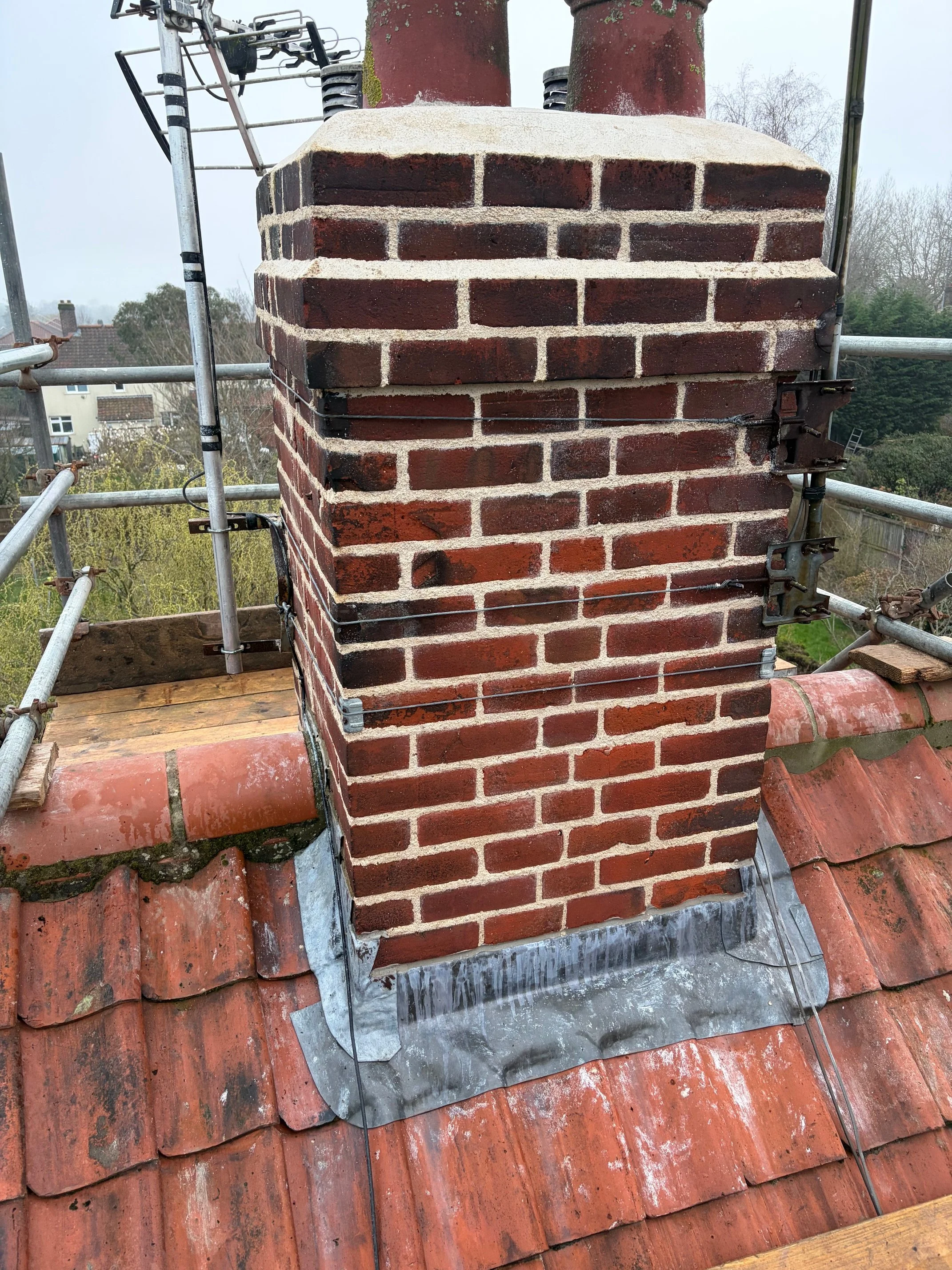 Second chimney repointed in lime mortar